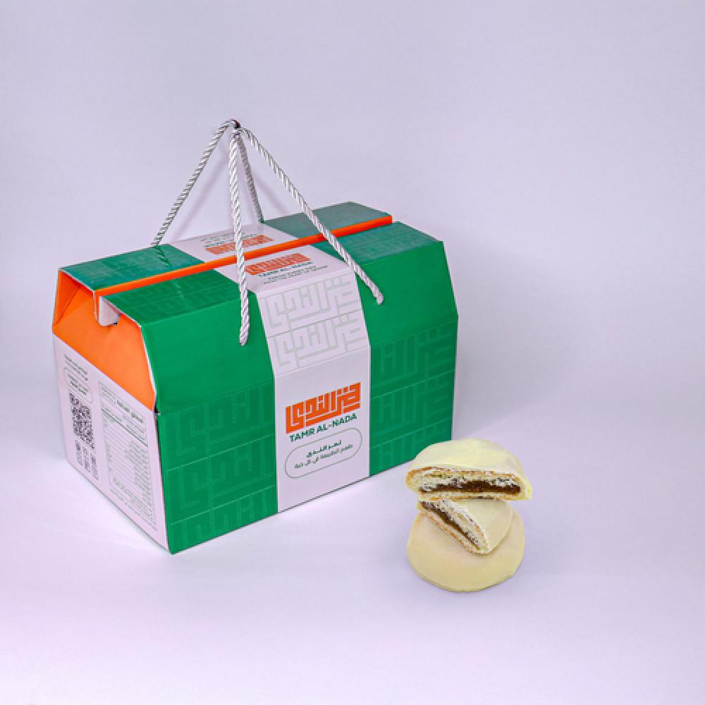 معمول جالكسي أبيض “تمر الندى” يقدم لك تجربة فريدة من نوعها مع طعم الشوكولاتة البيضاء الغنية التي تذوب في الفم، محشو بعناية بحشوة لذيذة توازن بين الحلاوة والقوام الطري للعجينة.